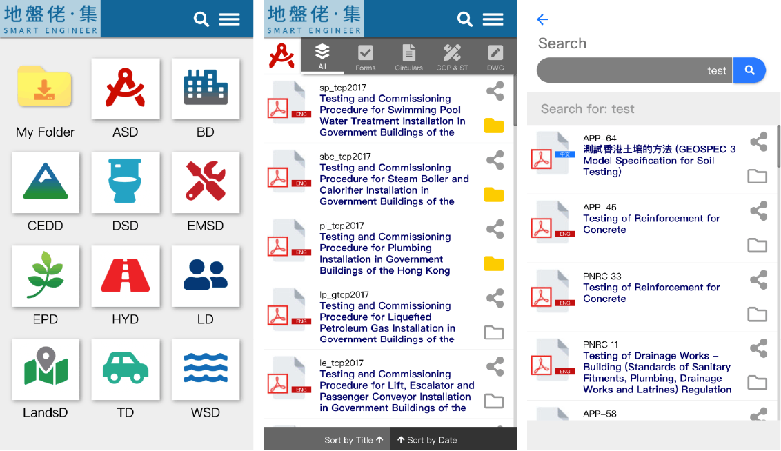 A convenient tool for site engineer, the foreman facilitates the search of relevant government department documents required for daily work, including standard drawings, code of practices, forms, technical circulars, etc.